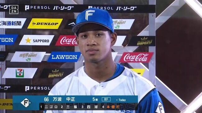 (出典 万波中正 .310(29-9) 5本 10打点 OPS1.301)